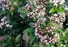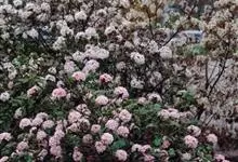 地中海荚蒾是五福花科,荚蒾属常绿灌木,树冠呈球形,冠径可达3米。叶片椭圆形,深绿色,聚伞花序,单花小,花蕾粉红色,盛开后花白色,果卵形,深蓝黑色,花期在原产地从11月直到翌存4月。…全部>>