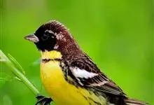 黄胸鹀是雀形目雀科鹀属鸟类,又名黄胆、禾花雀。雄鸟额、头顶、颏、喉黑色;头顶和上体栗色或栗红色;尾黑褐色,外侧两对尾羽具长的楔状白班;两翅黑褐色,翅上具一窄的白色横带和一宽的白色翅斑;下体鲜黄色,…全部>>