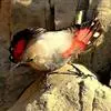 红翅旋壁雀:体重15-23克,体长120-178毫米。是一种体型略小的鸟类。尾短而嘴长,翼具醒目的绯红色斑纹。飞羽黑色,外侧尾羽羽端白色显著,初级飞羽两排白色点斑飞行时成带状。繁殖期雄鸟脸及喉黑色,…全部>>