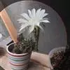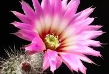 仙人球花 仙人掌科,仙人球属。植株单生或成丛。幼株球形,老株长成圆筒状,高可达75厘米,直径12-15厘米。球体暗绿色,具棱11-12。刺锥状,黑色,长1-1.5厘米。花着生于球体侧方,大型嗽喇叭状…全部>>