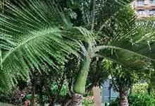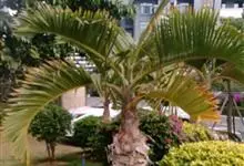 布迪椰子 Becc.)是棕榈科,布迪椰属常绿观赏树种,单干型,高可达8米,老叶基残存包裹于树干,粗壮、坚硬。羽状叶,弯曲如弓形,有羽片对,厚革质,叶端尖锐,小叶片长灰绿色,叶柄具刺;雌雄同株;花序腋生,…全部>>