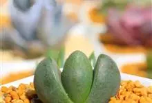 帝玉是番杏科、对叶花属多肉多年生草本多浆植物。植株矮小。植株无茎,叶极肉质,交互对生,对生叶卵圆形,基部合生,在生长期上部拉开很大一段距离,似元宝状,而到了休眠期老叶逐渐干枯萎缩,仅剩中间的一对叶,…全部>>