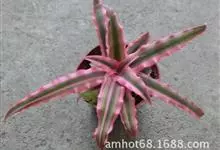 彩叶凤梨 L.B.Sm.) 凤梨科多年生常绿草本。株高25-30厘米,茎短。叶革质,带状,常基生,莲座式排列,叶缘有锯齿。花两性,少单性,辐射对称或稍两侧对称,花序为顶生的穗状花序。…全部>>