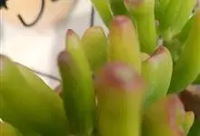 筒叶花月,是景天科青锁龙属的多年生草本植物。植株多分株,灌木状,茎较粗壮,圆柱形,表皮灰褐色;叶片肉质,互生,呈圆筒状,簇生于茎或分枝顶端,叶端呈斜截形,截面为椭圆形;花呈星状,淡白色;花期秋季。…全部>>