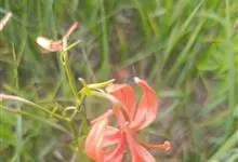山丹是百合科百合属的多年生草本植物。鳞茎卵形或圆锥形,鳞片长圆形或长卵形,白色;叶散生茎中部,线形,边缘有乳头状突起;花单生或数朵成总状花序,花鲜红色,常无斑点,花被片反卷,…全部>>