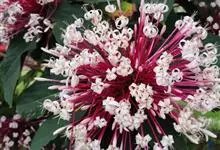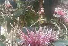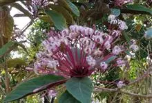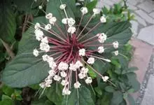 烟火树 Merr.)是唇形科、大青属常绿灌木或小乔木,株高可达4米。幼枝方形,墨绿色。叶对生,长椭圆形或披针形,先端尖,全缘或波状缘。纸质,叶背暗紫红色。聚伞状圆锥花序,顶生,小花多数,聚生成团,…全部>>