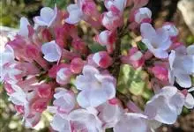 地中海荚蒾是五福花科,荚蒾属常绿灌木,树冠呈球形,冠径可达3米。叶片椭圆形,深绿色,聚伞花序,单花小,花蕾粉红色,盛开后花白色,果卵形,深蓝黑色,花期在原产地从11月直到翌存4月。…全部>>