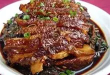 梅菜扣肉,汉族传统名菜,属客家菜 。制作材料有五花肉、梅菜、葱白、姜片等。全部>>