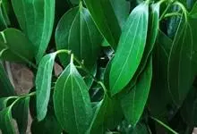 天竺桂,是樟科樟属乔木植物,枝条细弱呈圆柱形,无毛;叶近对生或在枝条上部互生,呈卵圆状长圆形或披针形,上面绿色,下面灰绿色;花序梗与序轴均无毛,花被片呈卵形;果长圆形,…全部>>