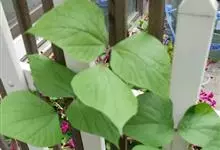 扁豆 Sweet)是豆科扁豆属多年生缠绕藤本植物,又名鹊豆、沿篱豆、藤豆等。全株几无毛,茎长可达6米。羽状复叶具3小叶;托叶基着,叶片披针形;小托叶线形,小叶宽三角状卵形,宽与长相等,…全部>>