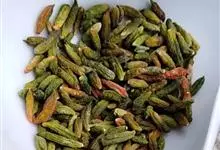干煸豆角是用四季豆制作作为主要食材,以酱油、香油、味精、醋作为调料制作而成的一道家常菜。口味咸香辣,色泽嫩绿,口感脆嫩,营养丰富。豆角中的纤维有利于降低人体内的胆固醇,…全部>>