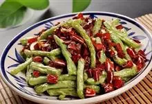 干煸豆角是用四季豆制作作为主要食材,以酱油、香油、味精、醋作为调料制作而成的一道家常菜。口味咸香辣,色泽嫩绿,口感脆嫩,营养丰富。豆角中的纤维有利于降低人体内的胆固醇,…全部>>