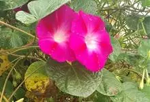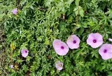 五爪金龙 Sweet),旋花科番薯属多年生缠绕草本植物。茎细长,有细棱;叶片为掌状;花冠紫红色、紫色或淡红色、偶有白色,漏斗状;蒴果近球形。花期5~12月。五爪金龙的叶子类似掌状,有5至7个裂痕,…全部>>