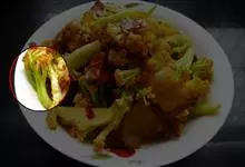 干锅花菜,是湘菜常见的一道菜,以花菜、秀珍菇、蘑菇、青红尖椒为主要食材,以豆瓣酱、豆豉酱、干辣椒段、花椒粒、姜片、蒜片、葱段、酱油、盐、鸡粉、白糖为辅料制作而成的美食,…全部>>