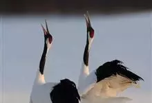 丹顶鹤:是鹤科、鹤属的一种大型涉禽,体长120-160厘米。颈、脚较长,通体大多白色,头顶鲜红色,喉和颈黑色,耳至头枕白色,脚黑色,站立时颈、尾部飞羽和脚黑色,头顶红色,…全部>>