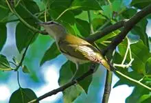 黑翅雀鹎:体重14-19克,体长11.5-16厘米。是树栖性绿色小鸟,外形与叶鹎相似,下体黄色。鸟喙直,翼长而尖,总体羽毛是绿色和黄色相结合,翼上具两道明显近白色横纹,翼近黑而羽缘白。…全部>>