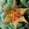 巨花犀角又称大豹皮花,是夹竹桃科犀角属的一种植物。茎粗,花大,边缘生长细毛。植株柱形多分枝呈丛生,柱形具4棱,棱缘具细小疣突。花大,五角星形黄色,并有横向棕褐色斑纹,似豹皮而得名。花期夏秋两季。…全部>>
