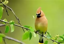 雪松太平鸟体形中等大小,体长约在19厘米左右。该物种雄雌同形同色,太平鸟成鸟额部及面部前端为栗色,向头后部颜色逐渐变浅;额基部、眼先、眼周及眼后部有黑色纹带,颌部亦有黑色区域;枕部黑色,与贯眼的黑色…全部>>