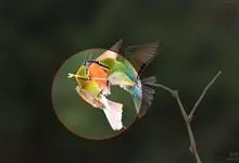 栗喉蜂虎是蜂虎科蜂虎属的鸟类。有热带鸟类羽毛艳丽的特征:喉部是栗红色的,黑色的过眼纹,翅膀和背部是绿色的,尾翼是蓝色的,飞行时翅膀下面的羽毛是橙黄色的,在阳光的照射下,它们全身闪烁着金属般的艳丽光泽,…全部>>