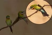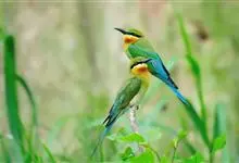 蓝颊蜂虎:是蜂虎科、蜂虎属的鸟类,共有2个亚种。体长27-33厘米,翼展46-49厘米,体重38-50克。嘴形细长而下弯,先端尖,…全部>>