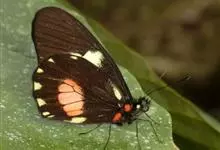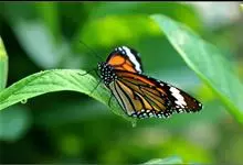 黑脉金斑蝶:翅阔8.6-12.4厘米。雄蝶较雌蝶为大。成年蝶颜色鲜艳,翅膀上有显眼的橙色及黑色斑纹,周围是宽阔的黑色边框,布有许多白色斑点。这种引人注目的着色是对捕食者的视觉警告,表示这个物种有毒;…全部>>