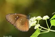 虎斑蝶,Danaus genutia ,是斑蝶属的一种,常见于湿地公园内。雄性虎斑蝶经常伏于吊裙草 上吸食汁液,以制造吸引异性的香气。虎斑蝶翅膀腹面鲜橙色,翅脉和翅边缘黑色,边缘上有两行小白点,…全部>>