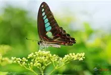 青带凤蝶Graphium sarpedon ,又名青凤蝶,是最普遍的中型凤蝶,飞行速度很快。青带凤蝶的翅膀中央有许多浅蓝色的斑点,很整齐地排列成一条直线。这些斑点由上而下逐渐变大,就像一条青色的带子。全部>>