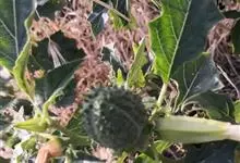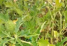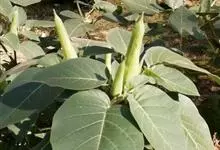曼陀罗,茄科曼陀罗属一年生大型草本植物,全株光滑。有臭气;叶呈广卯形,边缘具不规则波状浅齿裂;花单生于枝杖间或叶腋,直立,有短梗;花萼是筒状裂片三角形,颜色为白色或淡紫色;果实为蒴果卵状,…全部>>