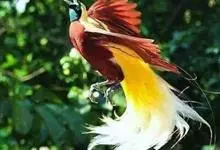 大极乐鸟是极乐鸟属中最大的鸟种。成年雄鸟体长可达到43厘米,雌性可达35厘米。雄鸟的额、颊、喉等墨绿色;头、颈黄色;上体暗赤栗色;腹部葡萄红色,胁部有长饰羽,其基部橙黄,中部黄色,…全部>>
