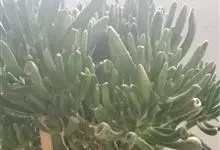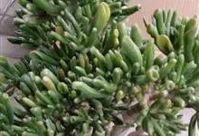 筒叶花月,是景天科青锁龙属的多年生草本植物。植株多分株,灌木状,茎较粗壮,圆柱形,表皮灰褐色;叶片肉质,互生,呈圆筒状,簇生于茎或分枝顶端,叶端呈斜截形,截面为椭圆形;花呈星状,淡白色;花期秋季。…全部>>