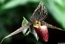 彩云兜兰是兰科、兜兰属的地生植物,是国家一级保护植物。地生。叶基生,数枚至多枚,带形、革质。花葶从叶丛中长出,花苞片非叶状;子房顶端常收狭成喙状;花大而艳丽,有种种色泽;中萼直立,花粉粉质或带粘性,…全部>>