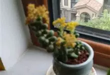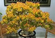 筒叶花月,是景天科青锁龙属的多年生草本植物。植株多分株,灌木状,茎较粗壮,圆柱形,表皮灰褐色;叶片肉质,互生,呈圆筒状,簇生于茎或分枝顶端,叶端呈斜截形,截面为椭圆形;花呈星状,淡白色;花期秋季。…全部>>
