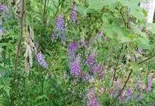 广布野豌豆是豆科野豌豆属的植物,多年生草本,高40-150厘米。根细长,多分支。茎攀援或蔓生,有棱,被柔毛。偶数羽状复叶,叶轴顶端卷须有2-3分支。总状花序与叶轴近等长,花多数,…全部>>
