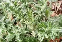 蓟,别名地萝卜、大蓟、山萝卜等,为菊科蓟属多年生草本植物。块根纺锤状或萝卜状。茎直立,茎枝有条棱,被绒毛。基生叶卵形或长倒卵形,羽状深裂或几全裂,基部渐狭成翼柄,边缘有针刺,茎叶两面有稀疏节毛。…全部>>