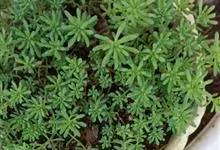 薄雪万年草别名矶小松,景天科景天属多年生草本植物,其细小的蓝绿色棒状叶片环绕生长于茎端,茎匍匐生长接触地面易着生不定根,整片生长郁郁葱葱犹如蓝色地毯,绿化效果极为秀美。原产西班牙,…全部>>