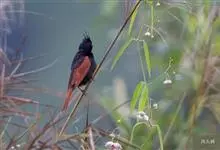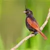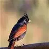 凤头鹀:属小型鸣禽,体重21-31克,体长134-175毫米。以头顶的细长羽冠为特征,雄鸟全身几乎均为黑色具蓝色光泽,两翅和尾以及尾上覆羽栗红色。雌鸟具短的褐色羽冠,上体暗橄榄褐色,…全部>>