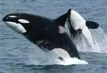 虎鲸,是鲸偶蹄目海豚科虎鲸属哺乳动物。成体体重6600千克,平均体长6-9米;头部略圆,…全部>>
