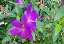 野牡丹:灌木,高0.5-1.5米,分枝多;茎钝四棱形或近圆柱形,毛扁平边缘流苏状。叶片坚纸质,卵形或广卵形,全缘,7基出脉,两面被糙伏毛及短柔毛。伞房花序生于分枝顶端,近头状,…全部>>