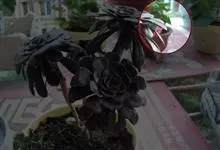 黑法师是景天科莲花掌属植物,自然界不存在分布。紫黑色的叶片呈莲座状层叠排列,给人以庄重神秘之感,观赏价值高。…全部>>