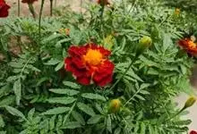 万寿菊是菊科万寿菊属一年生草本植物,别名孔雀菊、缎子花、臭菊花、西番菊、红黄草、小万寿菊、臭芙蓉、孔雀草。万寿菊茎近基部分枝。叶羽状分裂,长5-10厘米,宽4-8厘米,裂片长椭圆形或披针形,具锐齿,…全部>>