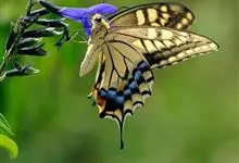 金凤蝶,是鳞翅目凤蝶科凤蝶属动物。金凤蝶为中型凤蝶,翅展70-84毫米,翅背面底色黑褐色,翅脉黑色,翅室具黄斑;前翅背面基部呈暗黄色,亚外缘为黑色,内具一列小黄斑;后翅背面亚外缘区具黑宽边,…全部>>