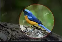 棕腹大仙鹟:体重24-28克,体长15-17厘米,是一种小型的色彩亮丽的鹟。雄鸟上体深蓝,下体棕色,脸黑,额、颈侧小块斑、翼角及腰部亮丽闪辉蓝色。与棕腹仙鹟易混淆,区别在色彩较暗。雌鸟灰褐,…全部>>