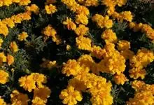 万寿菊是菊科万寿菊属一年生草本植物,别名孔雀菊、缎子花、臭菊花、西番菊、红黄草、小万寿菊、臭芙蓉、孔雀草。万寿菊茎近基部分枝。叶羽状分裂,长5-10厘米,宽4-8厘米,裂片长椭圆形或披针形,具锐齿,…全部>>