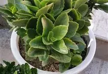江户紫,景天科伽蓝菜属草本植物,是多年生草本花卉。花白色,但栽培中很少能见到花,常作观叶植物栽培。…全部>>
