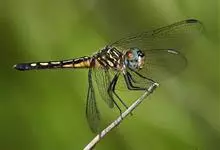 黑丽翅蜻属蜻科,是一类很原始的昆虫,河南、山东、安徽、江苏、福建、浙江、广东、广西等均有分布。面色浓,具毛,除前唇基色稍淡外,其余部分及头顶全为具金属光泽的蓝绿色或蓝褐色。后头褐色,后缘具毛。前胸黑色。…全部>>