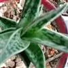 翠花掌是百合科、芦荟属植物。多年生肉质植物。株高20~30厘米具短茎,叶片三角剑形,肥厚多肉。表面下凹呈“V”形。叶长约12厘米,宽3-5厘米,有横向排列不规则的银白色或灰白色斑纹。松散的总状花序,…全部>>