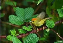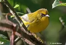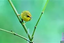 金头穗鹛小型鸟类,体长10~11厘米,是一种黄色小鸟。头顶金黄色有黑色纵纹,眼先黑色,在头、颊和耳羽金黄色的衬托下亦甚醒目。上体橄榄黄色,下体亮黄色,腹和两胁沾绿。…全部>>