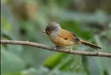 栗额斑翅鹛是噪眉科、斑翅鹛属中型鸟类,体长20-23厘米。头顶具浓密的羽冠,前额栗棕色,头顶灰褐色。上体棕褐色,两翅棕褐色具黑色横斑,翅基外缘有一黑斑,尾呈凸状,棕褐色具黑色横斑。下体棕褐色,…全部>>