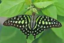木兰青凤蝶是鳞翅目凤蝶科青凤蝶属昆虫,又名青斑凤蝶、多斑青凤蝶、帝凤蝶、瑶风蝶。成虫头、胸灰黑色;腹面及腹侧为浅黄绿色;翅黑色;前翅前缘有7个新月形或不规则形的浅绿色斑纹排成一列,…全部>>
