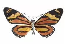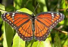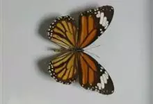 黑脉金斑蝶:翅阔8.6-12.4厘米。雄蝶较雌蝶为大。成年蝶颜色鲜艳,翅膀上有显眼的橙色及黑色斑纹,周围是宽阔的黑色边框,布有许多白色斑点。这种引人注目的着色是对捕食者的视觉警告,表示这个物种有毒;…全部>>
